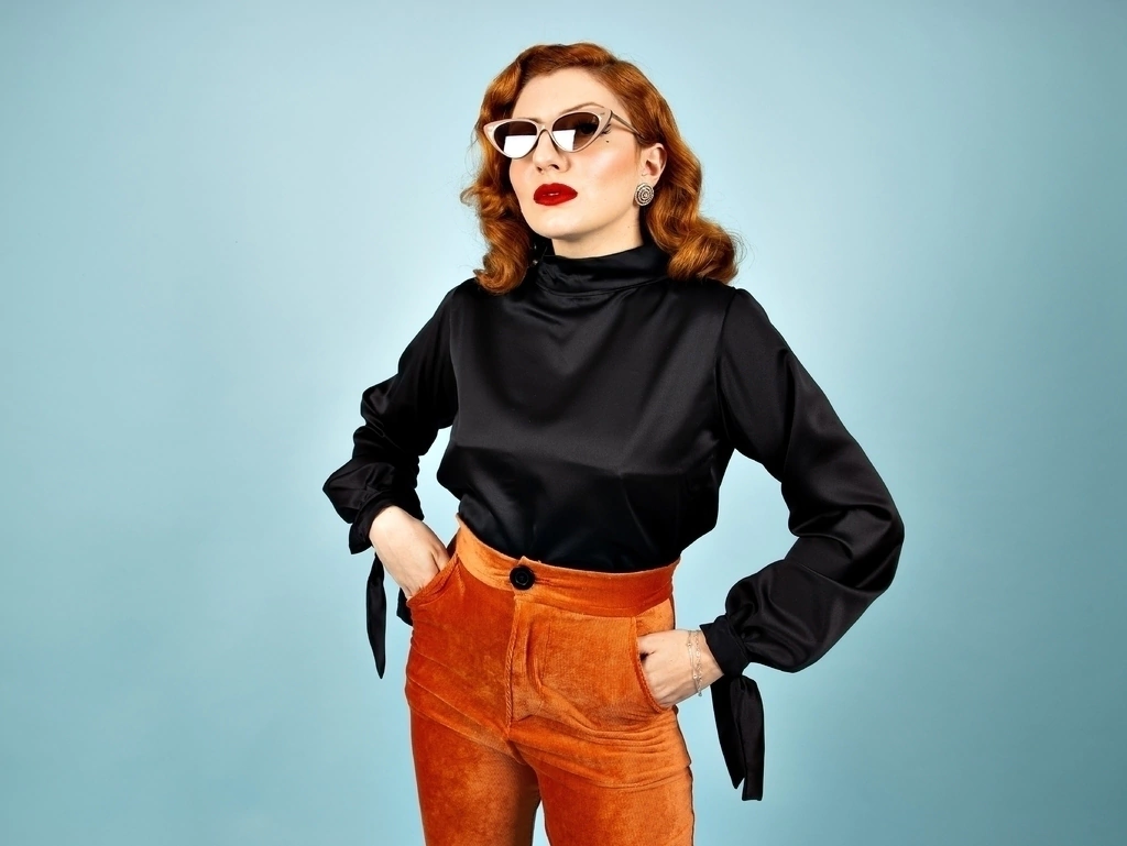Na foto ilustrativa a modelo faz uma composição perfeita com nossa Blusa Hollywood.