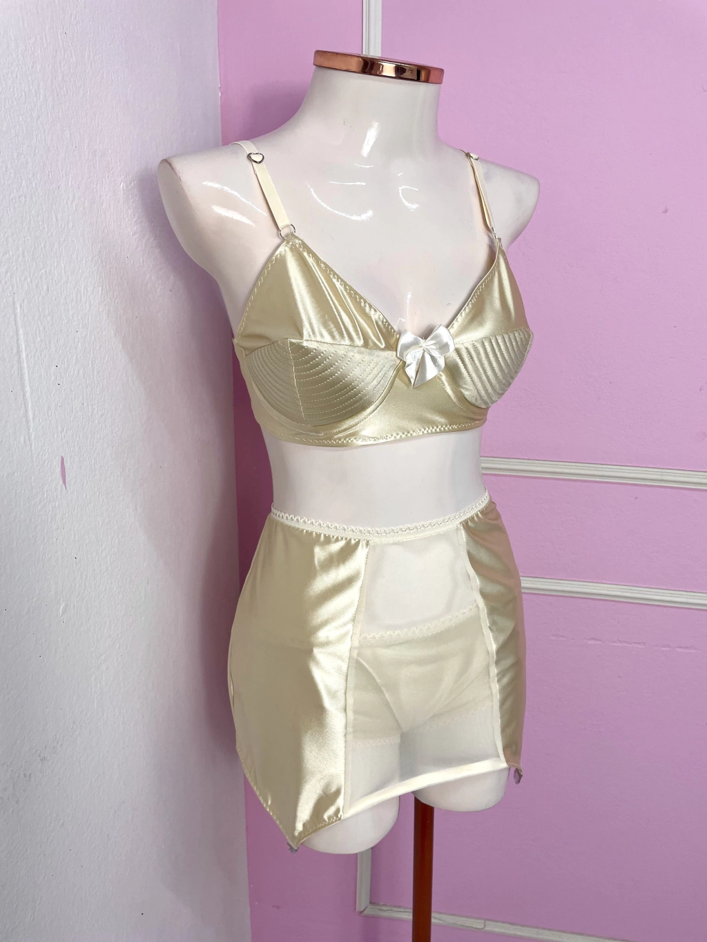 O Conjunto Moulin Rouge transborda beleza, sensualidade e conforto! É o osso modelo mais cobiçado de Lingerie, pois une o melhor dos dois mundos: o retrô com o atual. Sutiã levemente cônico, rico em detalhes. A calcinha com babados e transparencia nas laterais, e a cinta-liga que modela o corpo, o tornam um modelo super exclusivo e icônico.