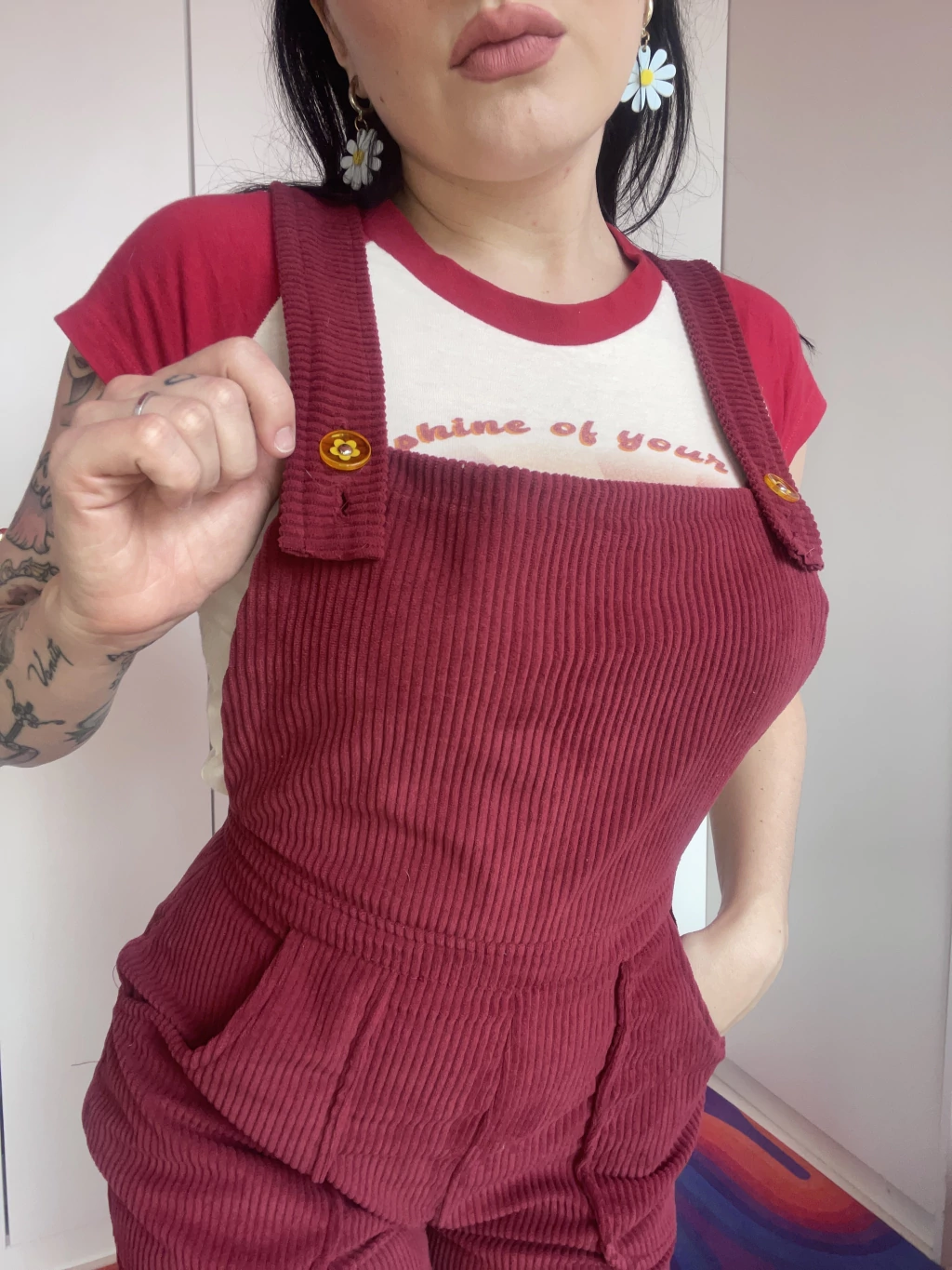 Com um toque vintage irresistível, nossa Jardineira Sunshine em veludo cotelê traz o espírito dos anos 60 para o presente. O caimento estruturado valoriza qualquer composição, enquanto os botões de acrílico em formato de flor dão o detalhe delicado que transforma a peça. Com bolsos frontais funcionais, ela é confortável, prática e cheia de personalidade.