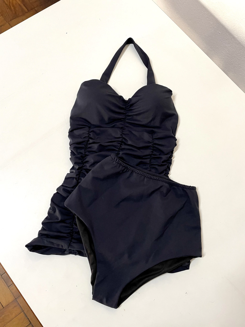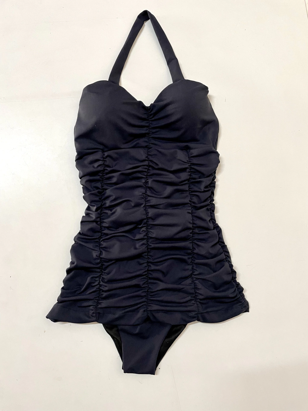 O Maiô Pin Up é um modelo que você nunca viu igual, pois a parte de cima é uma espécie de mini vestido com a parte de baixo separada. Esse modelo era muito usado nos anos 50. O destaque fica para os 8 elásticos responsável pelo efeito franzido da peça. Frente única e com bojo.