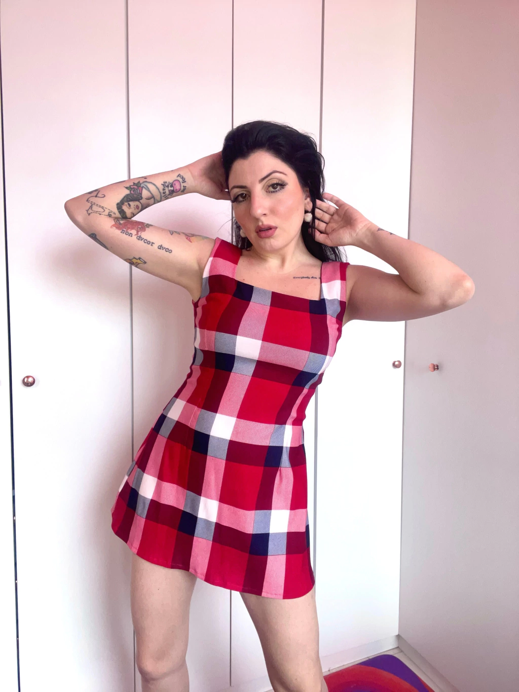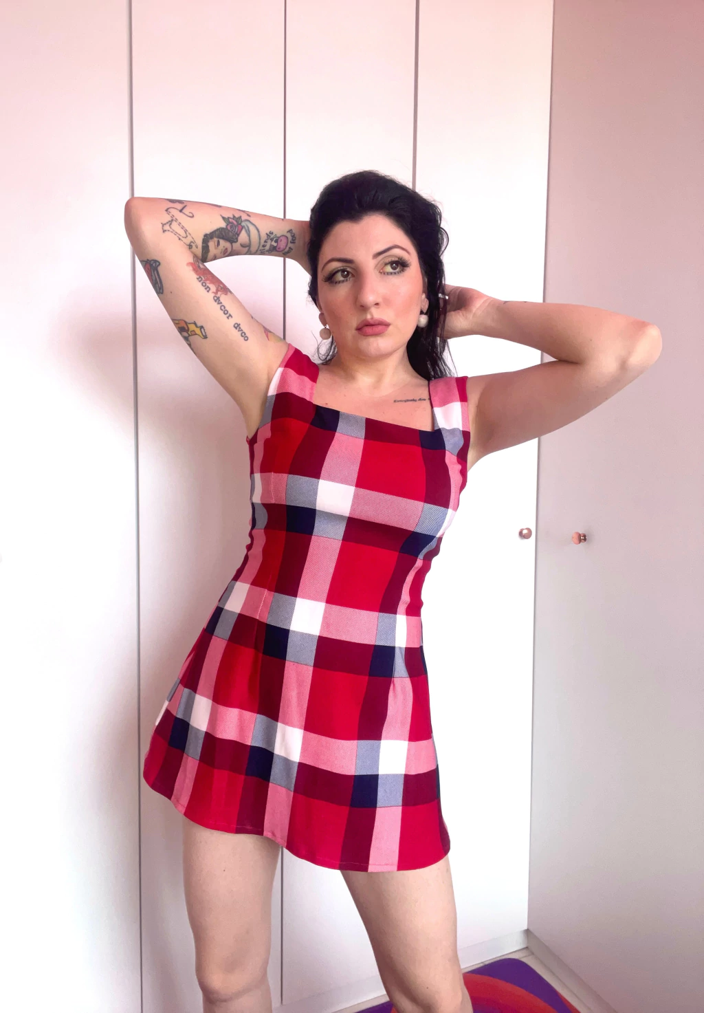 O Vestido Annie é a essência do básico clássico com charme retrô. Com decote quadrado estruturado, ele valoriza o colo de forma delicada e atemporal. O corte evasê da saia traz movimento leve e desenha uma silhueta feminina, típica dos anos 70. Em xadrez, curto e estiloso, o Annie combina simplicidade e personalidade.